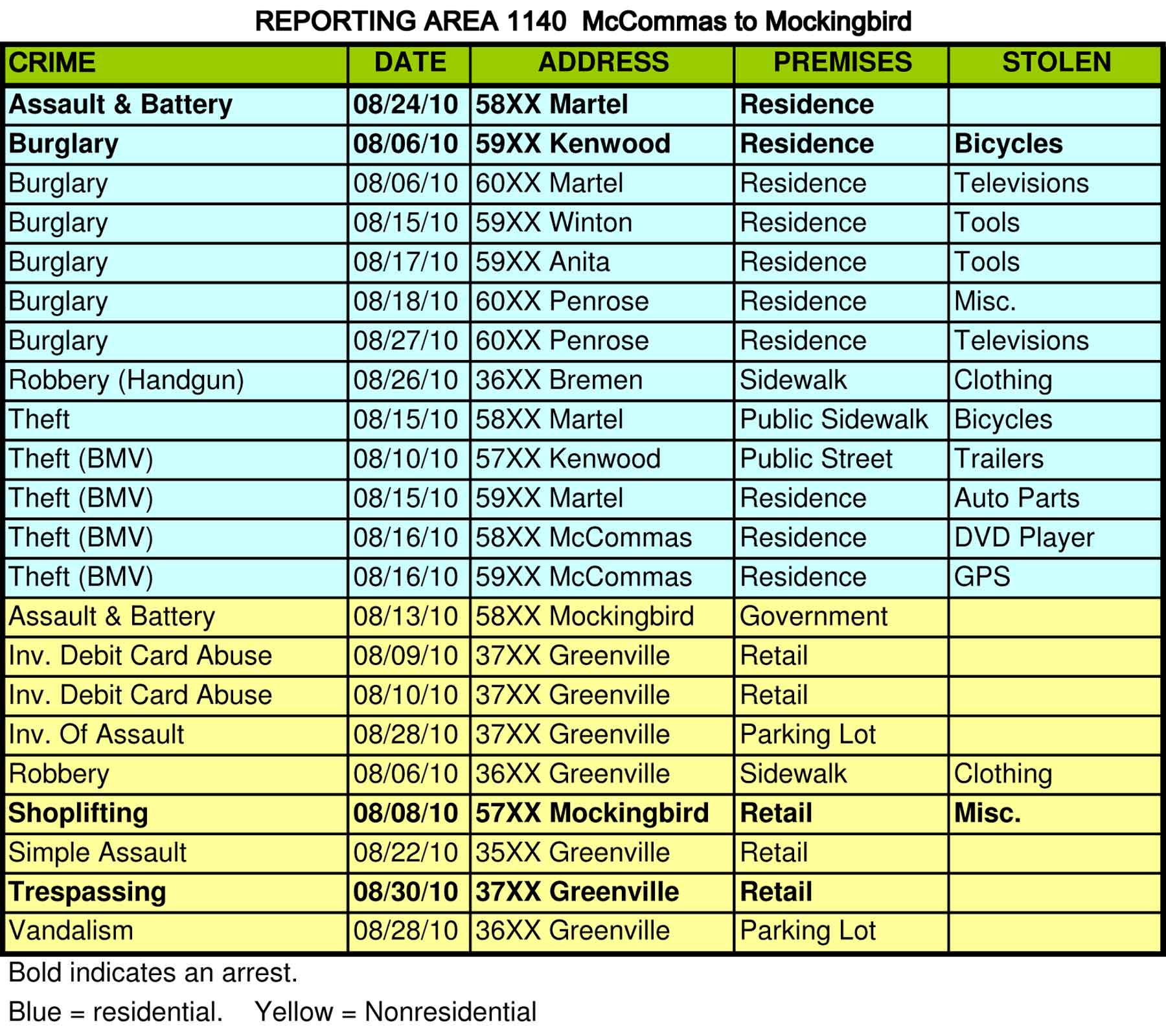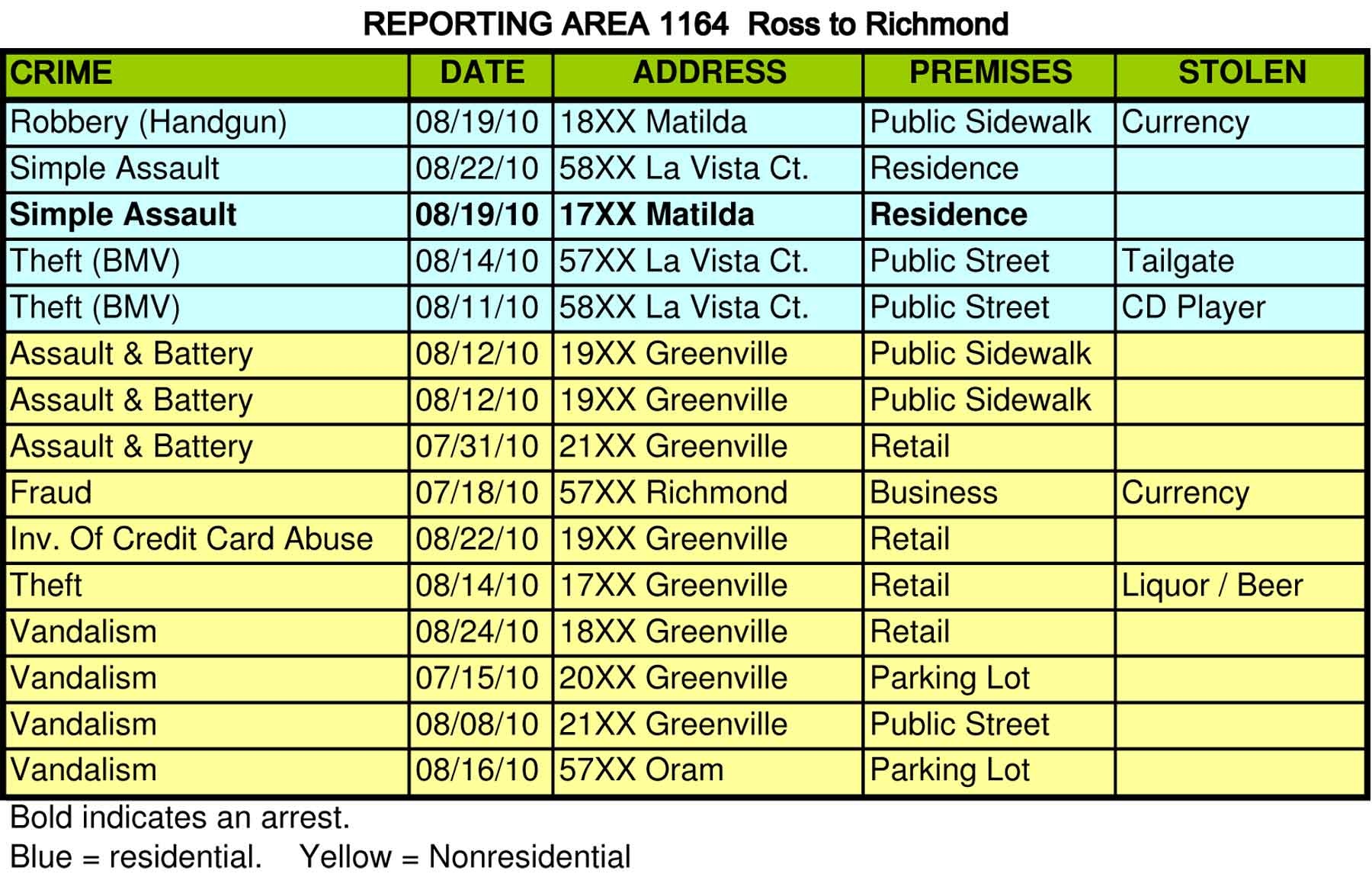 One of the robberies mentioned above was actually a home invasion that occurred on the 5700 block of Palo Pinto. This occurred while the occupants were out of town and a house sitter was watching the property. Four latin males with guns pushed their way into the home when the housesitter responded to a knock at the door. She was bound and left laying on the floor while they tossed the house. Based on victim testimony regarding comments made by the assailants, DPD beleive this may be a targetted incident with a personal connection. We have not had an incident like this in several years, but just in case, I’d advise not opening your door to strangers, especially after dark.