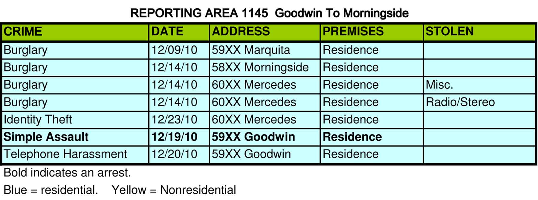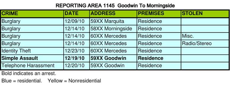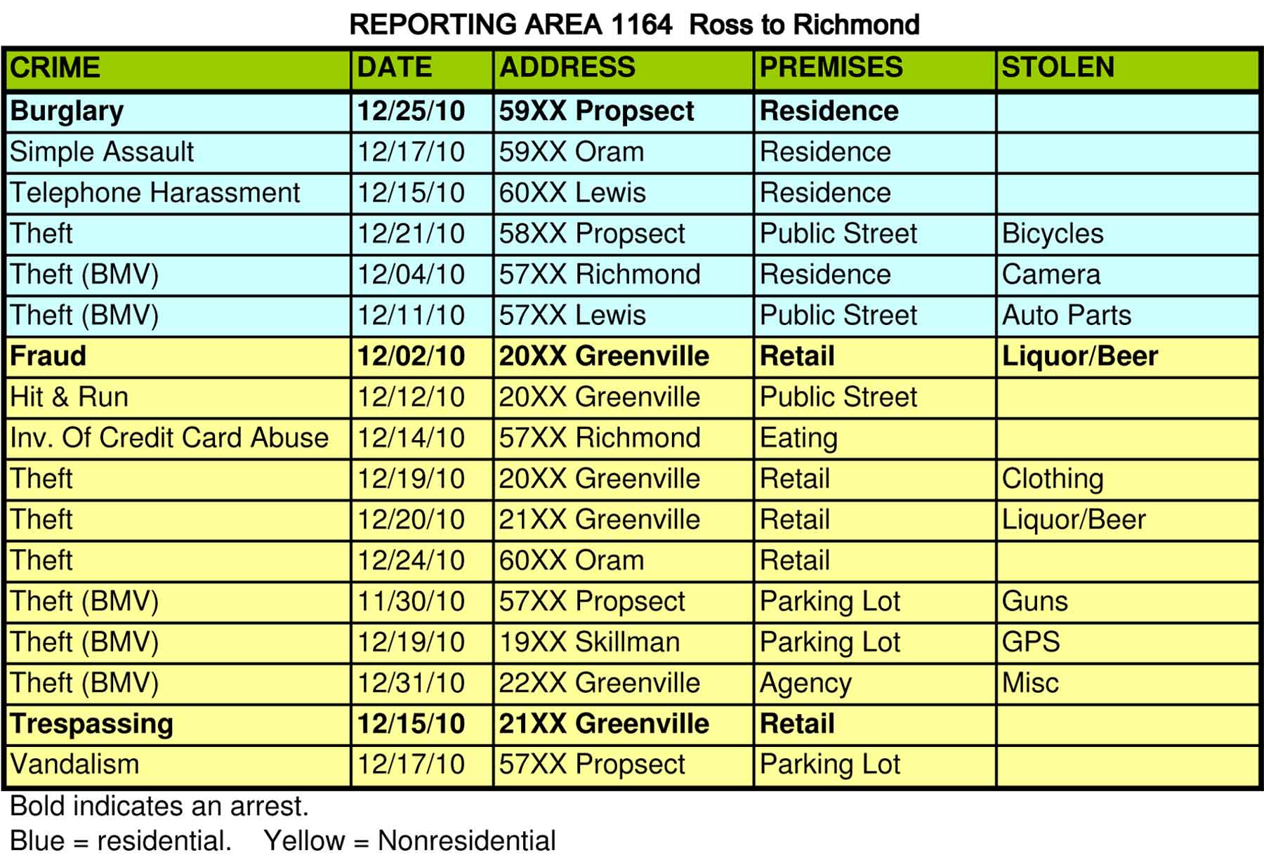 December crime stats are in and we mostly had another good month. We are down on total incidents and residentials thefts. BMVs would have been down were it not for 5 car break-ins that occurred at in the parking garage under 24-Hour Fitness. This garage has persistently been a magnet for theives, so try to park on top if possible when you go there.
