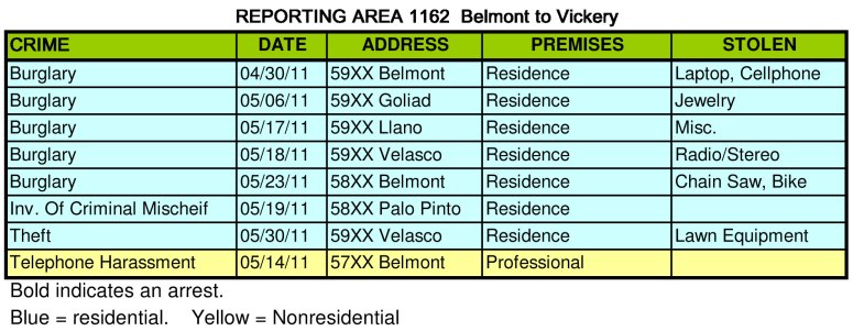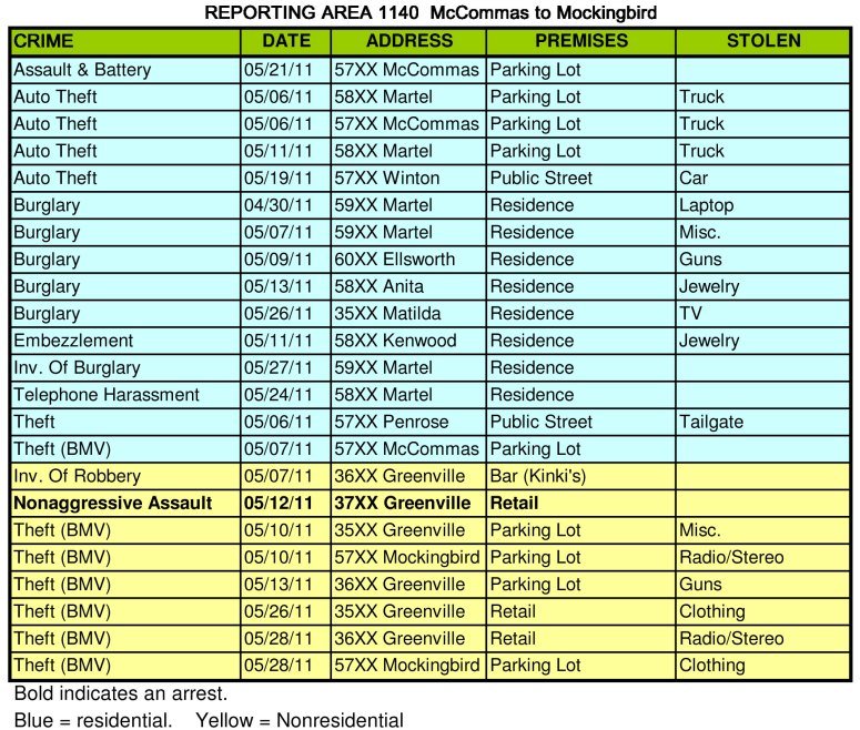The crime reports for May are below. I apologize for the delay this month, the computers at DPD were having trouble. This was a fairly average month with the exception of auto thefts where we had a spike.