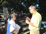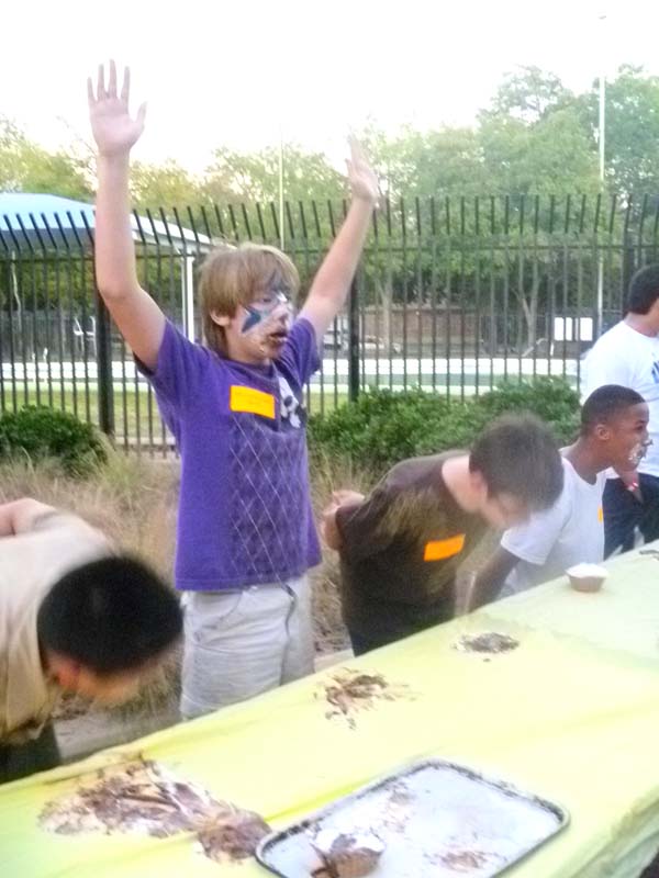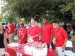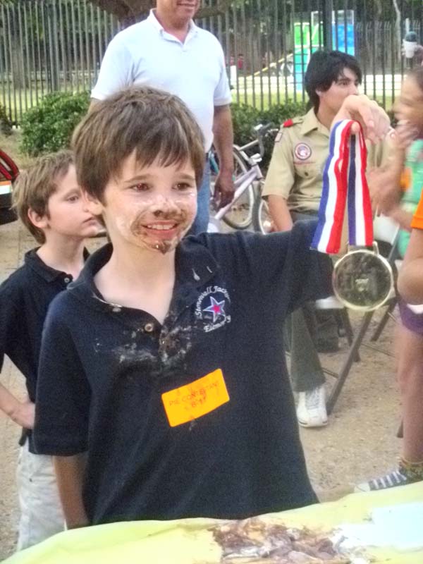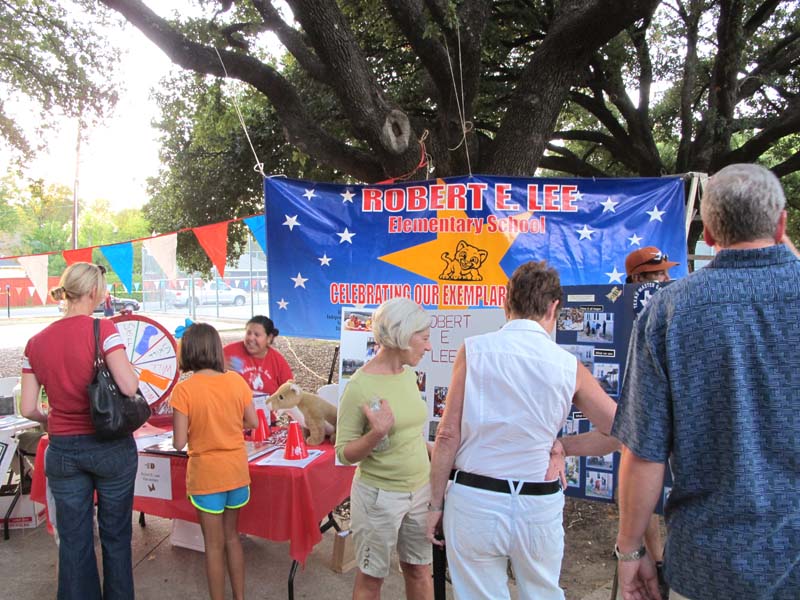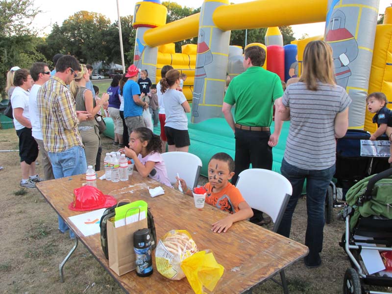 A former resident of our East Dallas area, Mayor Rawlings enjoyed himself by partaking of a snow cone and chatting with area residents. His visit to the Robert E. Lee school table was doubly pleasurable for Lee volunteers when he informed them that his wife had attended Robert E. Lee. Fire Station 17 brought their truck so that the kids could take a look inside a real fire truck. The Dallas Police Department sent several representatives including Deputy Chief Mike Genovesi. Chief Genovesi served as an excellent and impartial judge of the second annual pie-eating contest. Other participants were two dozen exhibitors including area churches, Dallas city services, security and health providers, and neighborhood associations and crime watches. Visitors took advantage of complimentary hamburgers and hot dogs cooked up by folks from Skillman Church of Christ and drinks provided by BellaVista Company, 7-Eleven at Greenville and Penrose, and the neighborhood associations. Low-cost pet chipping was provided by Vickery Place Animal Hospital, the YMCA at White Rock brought a bounce house, and neighbors enjoyed face painting for the kids and music for everyone by recording artist and Munger Place UMC Music Director Kate Miner.