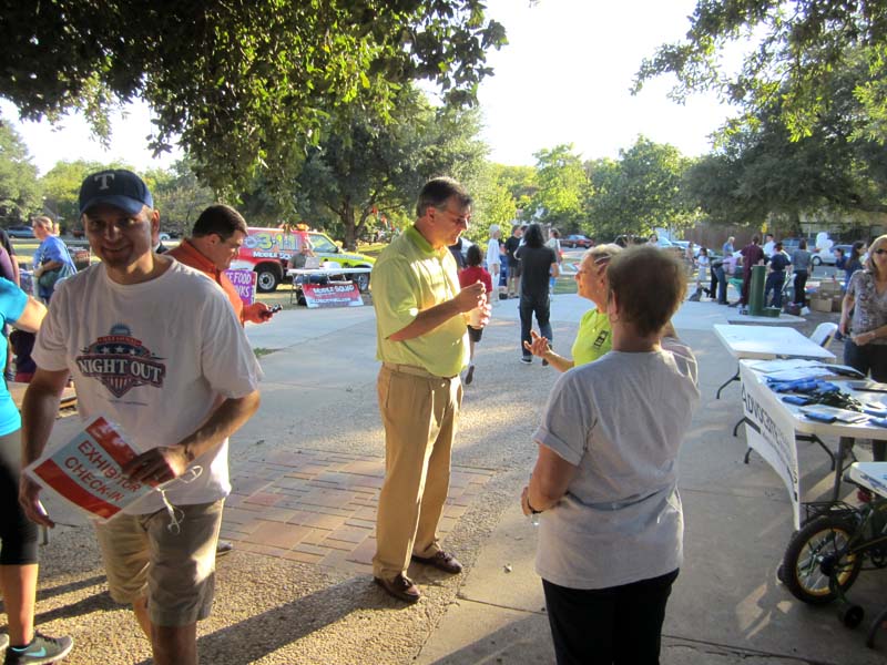 Tuesday, October 4, saw the eighth annual National Night Out in Tietze Park. This year, volunteers from three neighborhood associations – Lower Greenville, Lakewood Heights, and Lowest Greenville West – again worked to host the event. Approximately a thousand area residents attended. National Night Out is designed to strengthen community relationships between residents and public service organizations such as police, city departments and charitable organizations that serve the community. Visitors included Dallas Mayor Mike Rawlings.