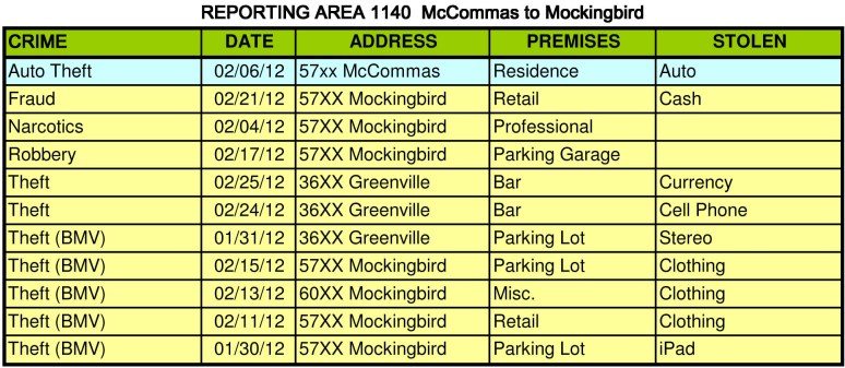 As you know, we were successful in getting Lowest Greenville rezoned to require businesses to get a special use permit to stay open past midnight. The goal was to get rid of the criminal element that several businesses were attracting. One of those, Yucatan – among the worst offenders, filed a lawsuit and received an injunction allowing them to stay open until the case is heard. On Feb 17th, a fight began inside Yucatan. The victims were asked to leave the club. They were then attacked in the parking lot by the same guys inside the club, who then stole their car. Rather than recap the details, I’ll let the police report speak for itself: