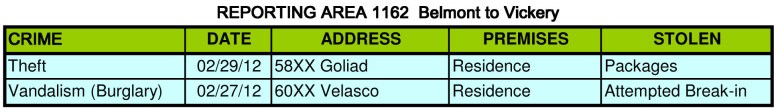 The car break-ins at the parking garage under 24-Hour Fitness have slowed but not stopped. Last month someone caught a burglar in the act of breaking into his car. When he walked up, the bad guy had broken out the window and was halfway into the car. The victim grabbed him and pulled him out of the vehicle and a fight ensued with the bad guy swinging at the victim with the metal object he’d use to break the window. The bad guy then jumped into a cream colored Nissan pick-up and sped away. Fortunately the victim wasn’t injured and the bad guy didn’t get anything. But I would discourage anyone from engaging a bad guy this way. The outcome could have been much worse. If you see a crime in progress, whip out your cell phone, take a picture and call 911. And use the words “in progress” with the 911 operator, that makes it a Priority 1 call and ensures the quickest response time. Police have a much better chance of catching him, and you have less risk of harm.