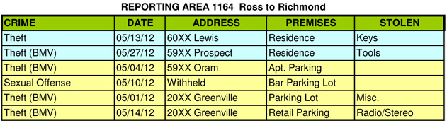 You’ll see in the reports below a case of a “sexual offense”. These reports are kept highly confidential for the sake of the victim’s privacy, especially in the case of a minor. So limited information is available. An intoxicated person, regularly known to be a panhandler in the area, exposed himself to a minor in the parking lot behind the strip that contains Single-Wide Bar and Simply Fondue. There was no physical contact, but it was explicit. This was not a simple case of someone urinating in public with minors in sight. A case is being pursued by DPD. I’ve asked our ENP officer to continue offering “courtesy rides” to The Bridge for the homeless he encounters in the neighborhood.