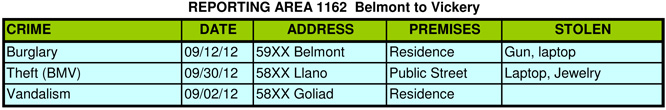 Our friends at DPD have recommended a new website for looking at crime information. It can be found at http://www.raidsonline.com. It lets you see specific types of crime on a map which is great for seeing trends. It can also create a “heat map” showing the hot spots for crime in any part of town. This site does not contain the complete record of details that is available on the DPD site, but its much easier to use. I’ve already made good use of this site in looking for trouble in our neighborhood and I think you’ll find it useful. Perhaps the most useful tool is that it allows you to sign up for a “crime alert” which sends you a report according to any rules you set up. So you can choose to receive daily, weekly or monthly reports. And you can choose which types of crime you want to be alerted to, so you can watch only burglaries and car-break-ins if that is what you want to follow. Best of all, the site is free and you don’t have to worry about your email address being used for nefarious purposes.