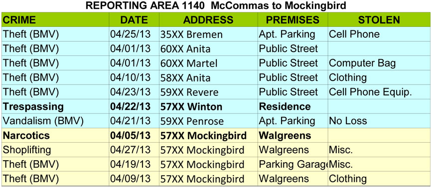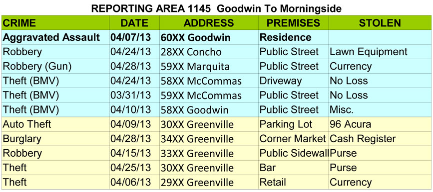 Just as a reminder to never let your guard down…. The car break in on April 6 listed below occurred at the 7/11 on the corner of Richmond. The victim locked his doors when he went into the store but had left the rear window cracked. In just a matter of a few minutes the bad guy managed to get in the car and steal some cash tucked into the visor. We’ve seen similar incidents at the Walgreens off Mockingbird in the past.