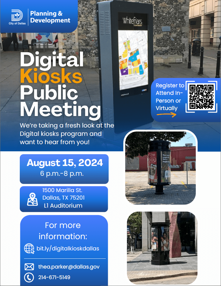 The City of Dallas is considering adding digital kiosks to pedestrian areas around the city. As a result, city staff is seeking public input on the plan.